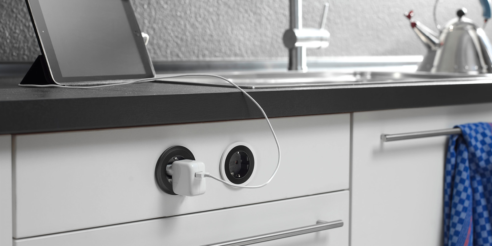 A TWIST2 egyik legnagyobb előnye a minimalista megjelenés. Zárt állapotban szinte teljesen belesimul a munkafelületbe. Egy egyszerű elfordítással azonban azonnal hozzáférhetővé válnak a csatlakozók.